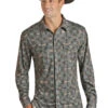 White Asparagus Serape Stripe Long Sleeve Huxley Retro Fit Snap Front Shirt.