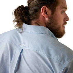 Chambray Blue Long Sleeve Solid Slub Classic Fit Button Down Shirt.
