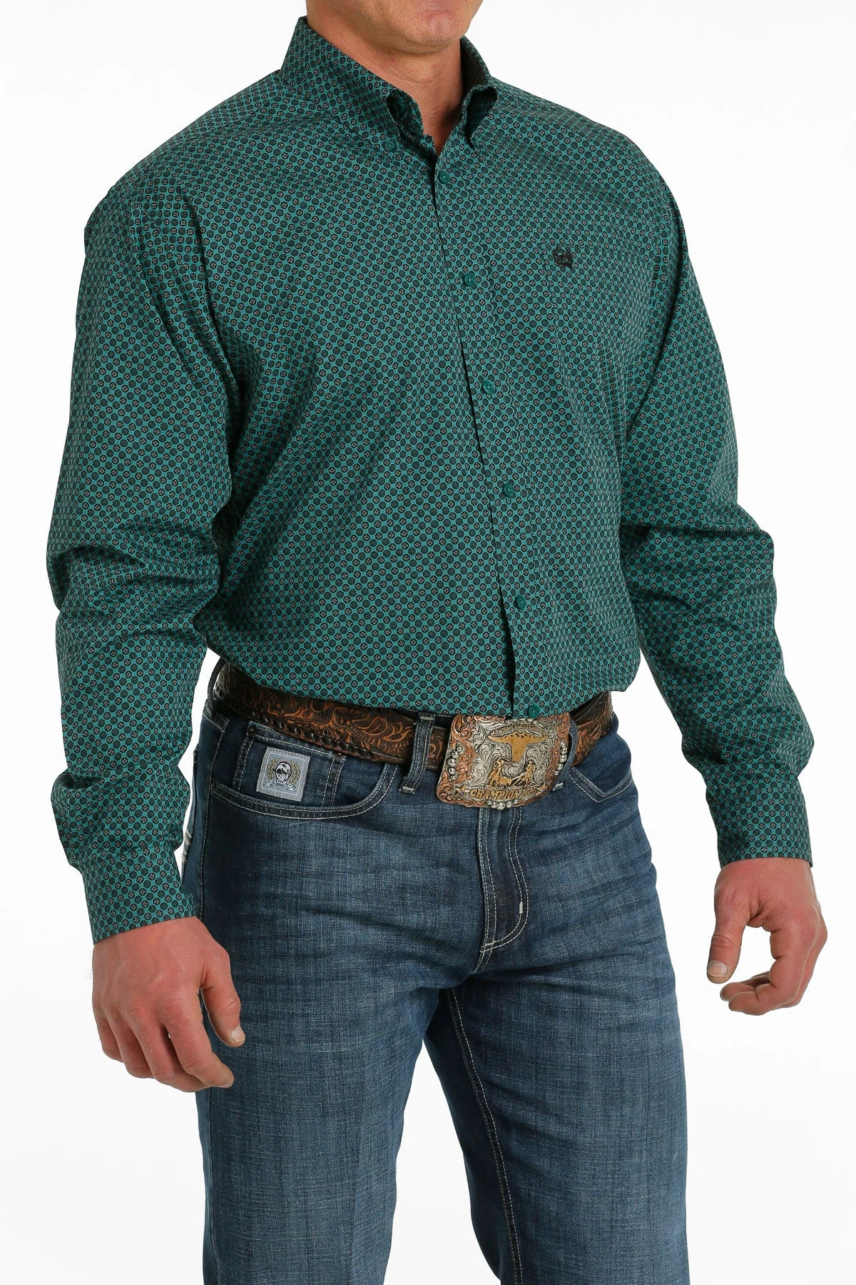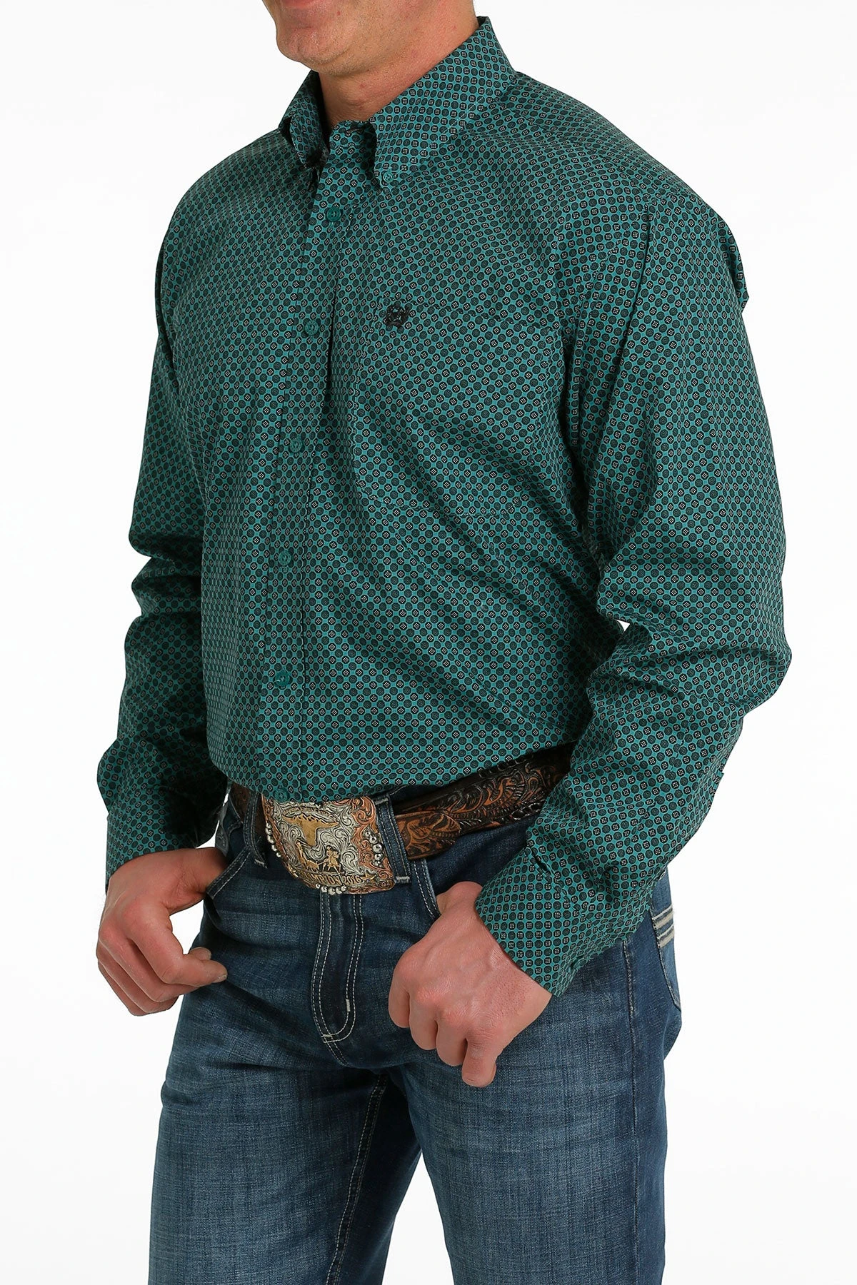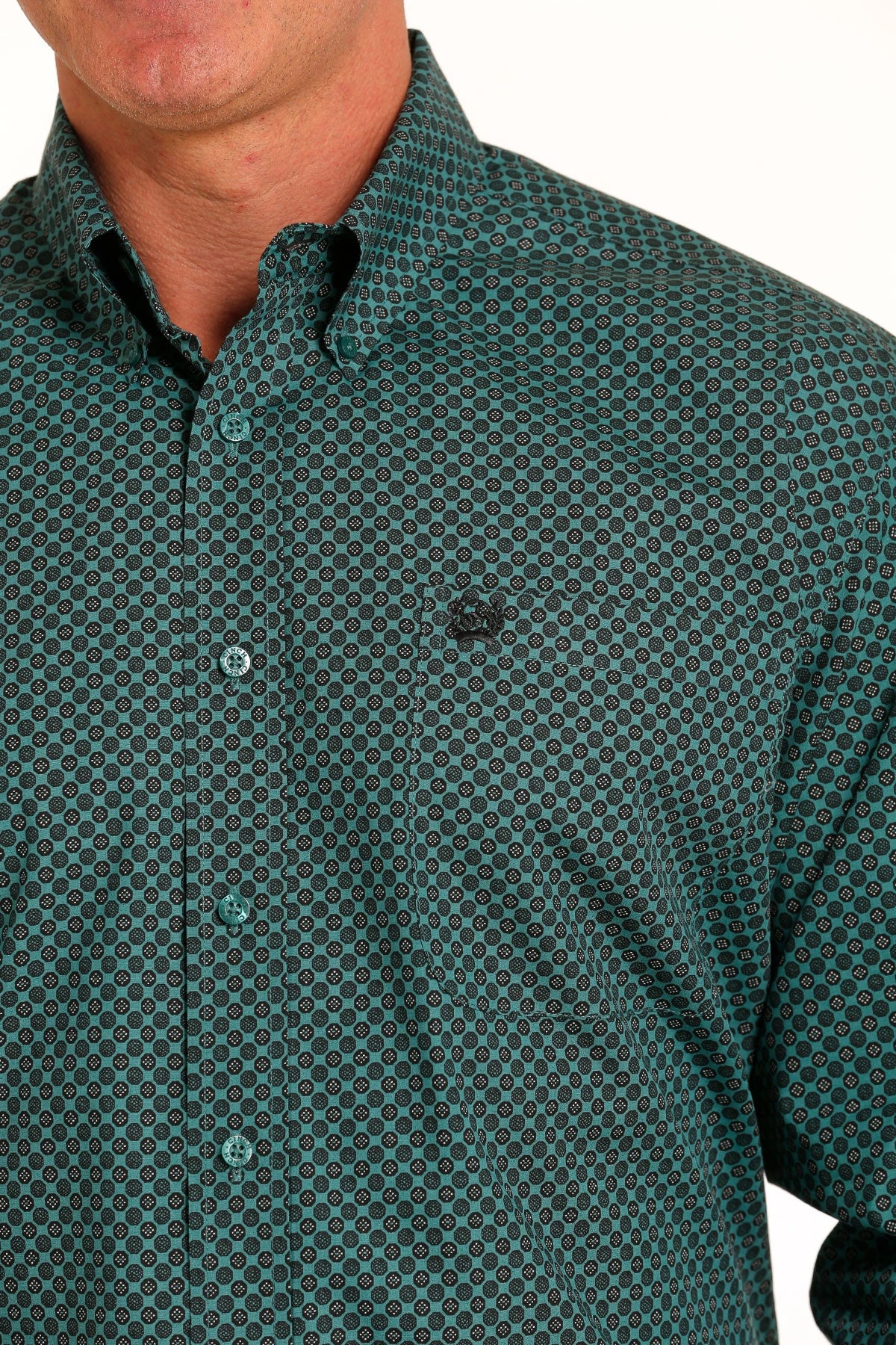 Green Circle Print Long Sleeve Button Down Shirt.