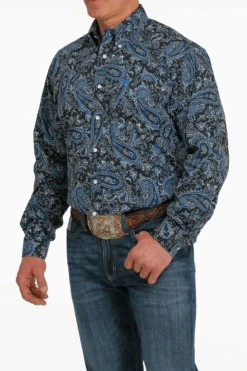 Cinch Men’s Navy Paisley Long Sleeve Button Down Shirt