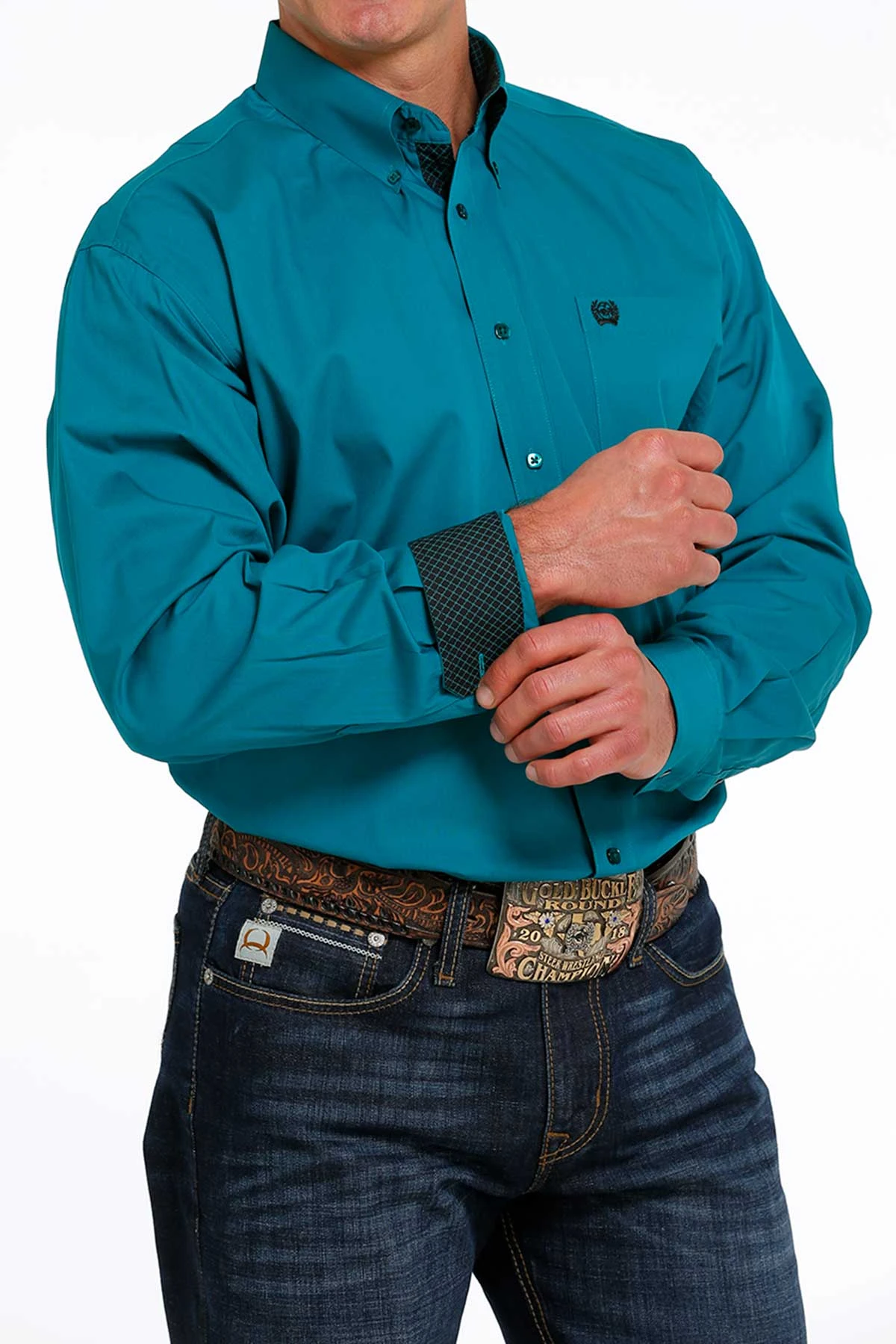 Cinch Men’s Solid Teal Windowplan Trim Button Down Long Sleeve