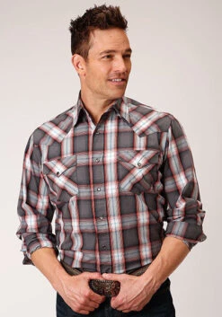 Slate Ombre Plaid Long Sleeve Snap Front Shirt.