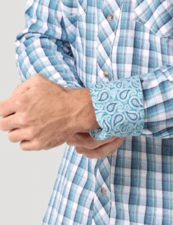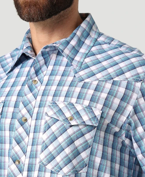 Blue Squared Plaid Long Sleeve Competition Advanced Comfort Snap Front Shirt.