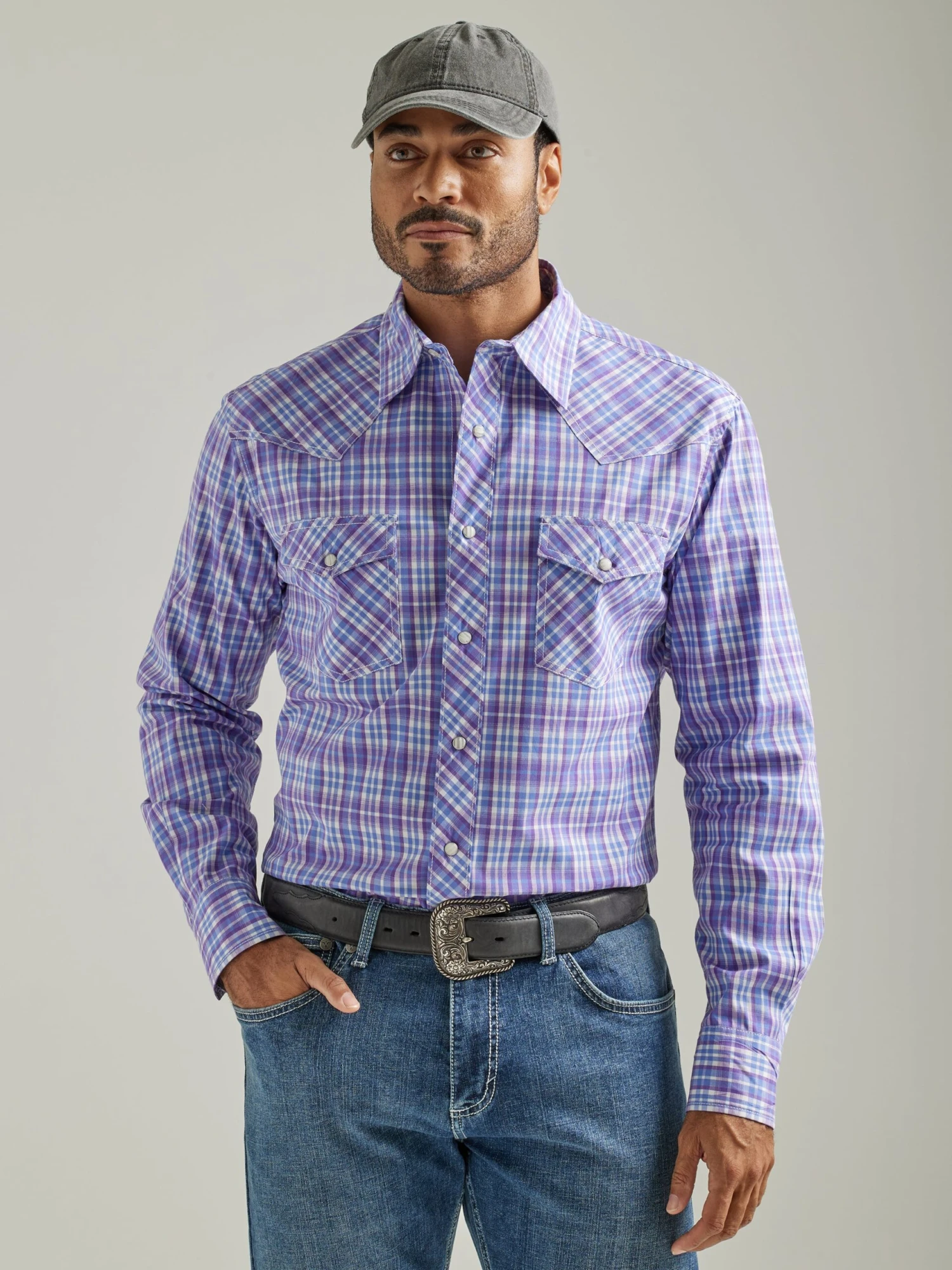Purple Grape Check Long Sleeve Snap Front Shirt.