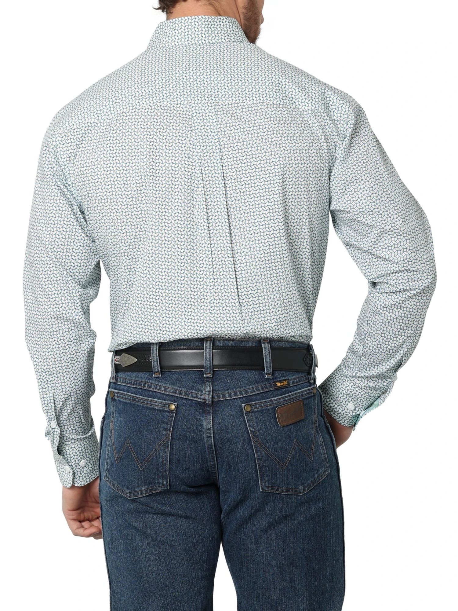 Aqua Abstract Print Long Sleeve George Strait Button Down Shirt.