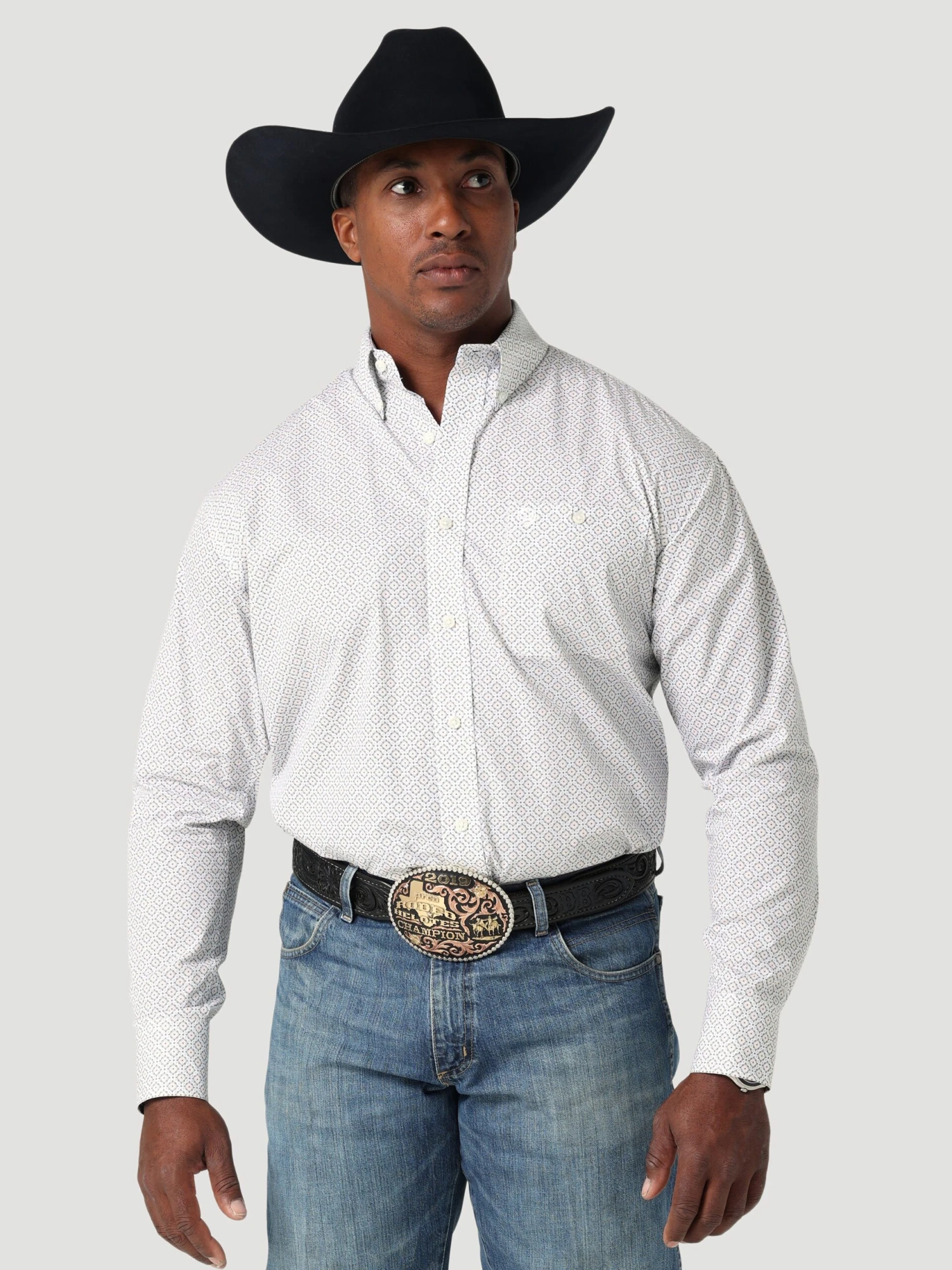 Steel Peach Print Long Sleeve Button Down Shirt.