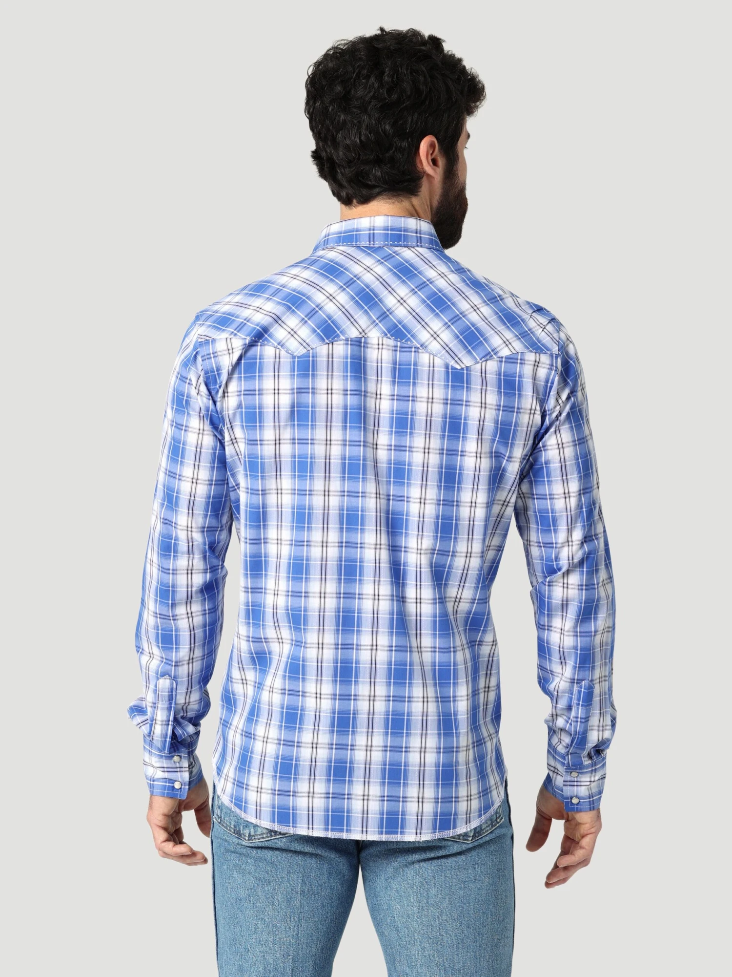 Dazzling Blue Plaid Long Sleeve Snap Front Shirt.