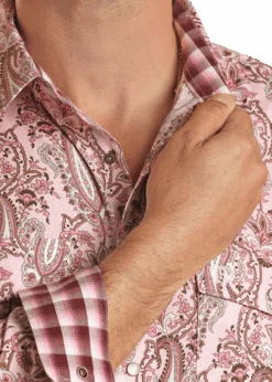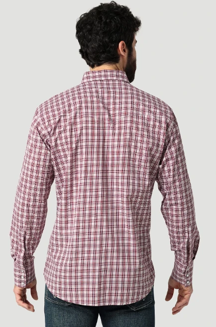 Currantly Red Plaid Long Sleeve Wrinkle Resist Snap Front Shirt.